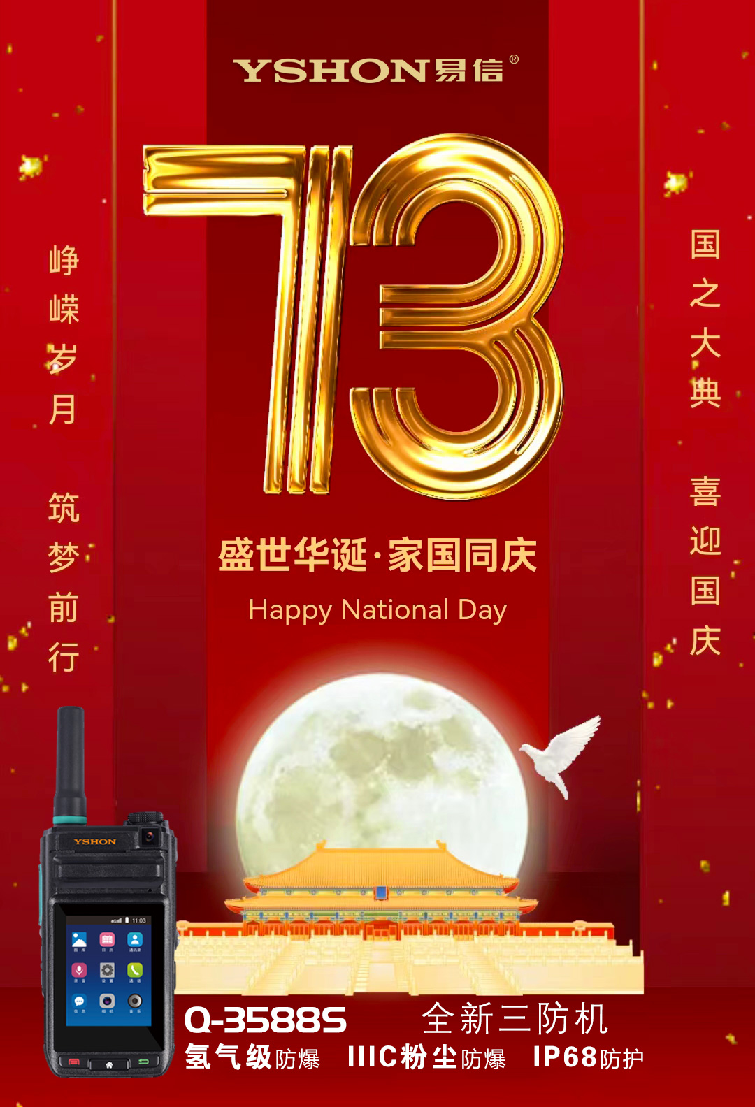輝煌七十三載,山河錦繡燦爛。崢嶸歲月,筑夢(mèng)前行!祝福祖國(guó),生日快樂!繁榮昌盛!國(guó)泰民安!
