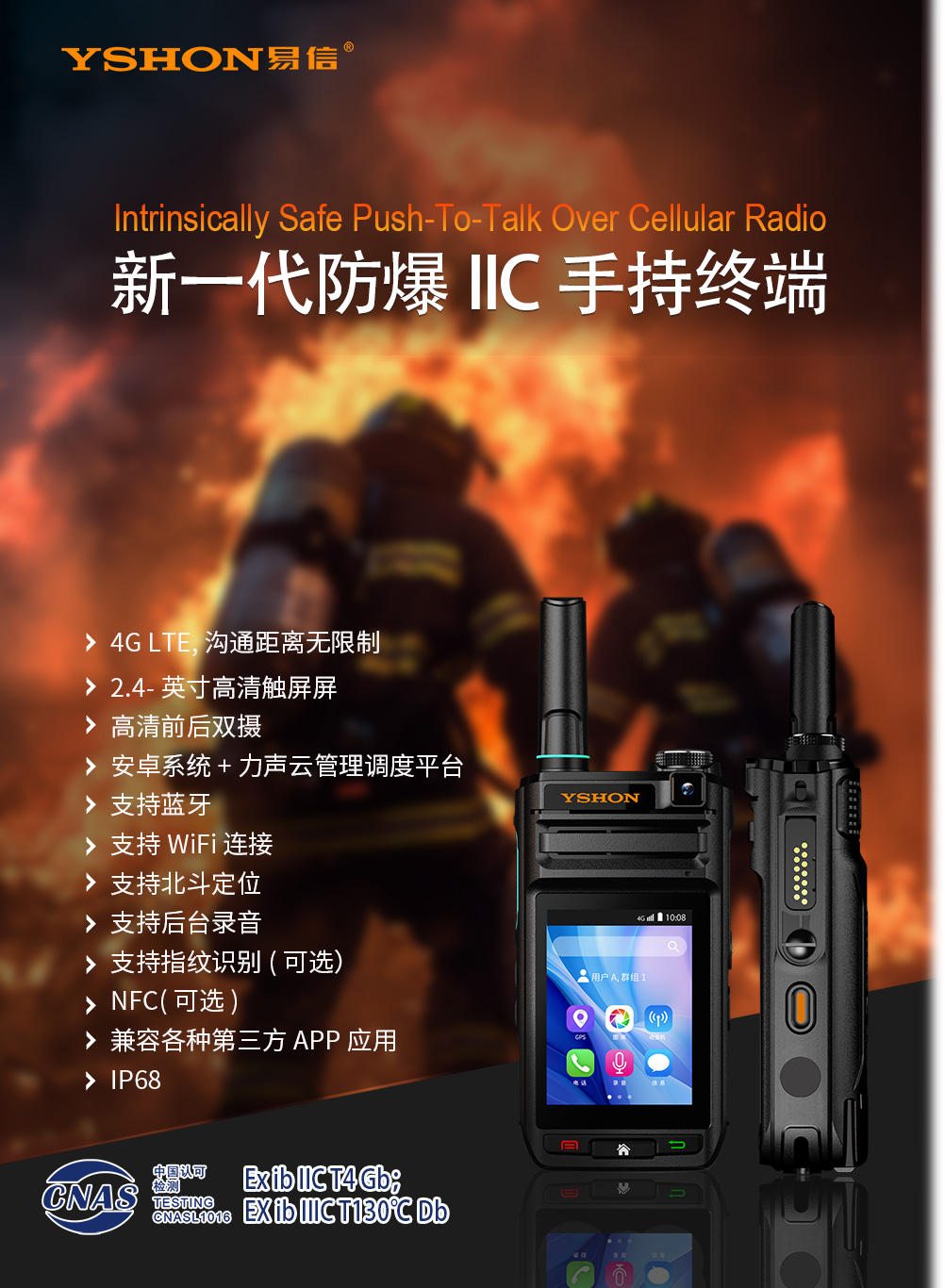 Q-3588S防爆對(duì)講機(jī)是力聲通信精心打造的,“氫氣級(jí)”IIC公網(wǎng)防爆對(duì)講機(jī),品質(zhì)嚴(yán)格符合中國防爆電氣標(biāo)準(zhǔn),為需要在含有爆炸性氣體和可燃性粉塵的危險(xiǎn)環(huán)境中作業(yè)的您提供更安全可靠的通信。 Q-3588S擁有強(qiáng)大的對(duì)講和集群調(diào)度功能,能夠?qū)崿F(xiàn)跨地域、跨網(wǎng)絡(luò)、跨終端的實(shí)時(shí)語音通信,具有通信范圍廣、通信質(zhì)量高、使用便捷等優(yōu)點(diǎn),被廣泛應(yīng)用于公共安全、物流運(yùn)輸、園區(qū)管理、工業(yè)制造等領(lǐng)域; 同時(shí),它在實(shí)現(xiàn)對(duì)講機(jī)“一按即通,一呼百應(yīng)”功能的基礎(chǔ)上,采用最新的智能操作系統(tǒng),兼容各種第三方APP應(yīng)用,通過適配用戶APP應(yīng)用,使用戶的工作更加高效便捷; 可實(shí)現(xiàn)單呼、組呼、關(guān)聯(lián)組呼叫、指揮調(diào)度、拍照視頻、定位軌跡等功能;適用于酒店、城管、機(jī)場(chǎng)、鐵路、物業(yè)管理、物流、大型工業(yè)園區(qū)等行業(yè); 整機(jī)符合IP68防護(hù)等級(jí),適合戶外工作。沖擊、振動(dòng)、太陽輻射等多項(xiàng)指標(biāo)滿足高可靠性標(biāo)準(zhǔn),勝任各種惡劣的工作環(huán)境。