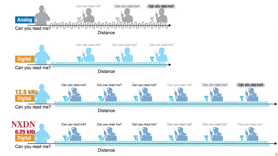 NXDN數(shù)字空中接口協(xié)議,采用FMDA方式。能夠提供6.25KHz超窄帶物理信道。優(yōu)異的濾波技術(shù)保證了在弱信號情況下依然具有低誤碼率,能夠提供相對遠(yuǎn)距離的通信。